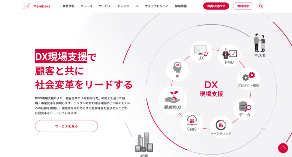 株式会社メンバーズは、大手企業のデジタル運用支援に特化しており、LP制作もPDCAサイクルを回すことを前提に構築します。 特に、顧客企業への内製化支援や、運用伴走型の制作体制に強みがあります。