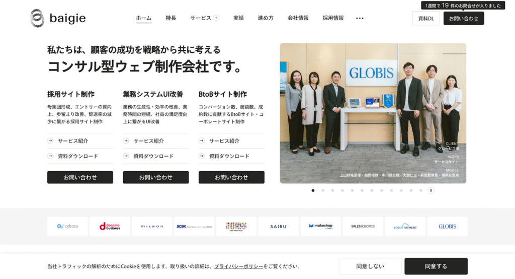 株式会社ベイジは、特にBtoBマーケティングにおける豊富な実績と、ロジカルな設計力に強みを持つ制作会社です。 単にLPを制作するだけでなく、事業戦略やターゲットの購買プロセス(ジャーニー)に基づいた、説得力のあるLP構成を得意としています。