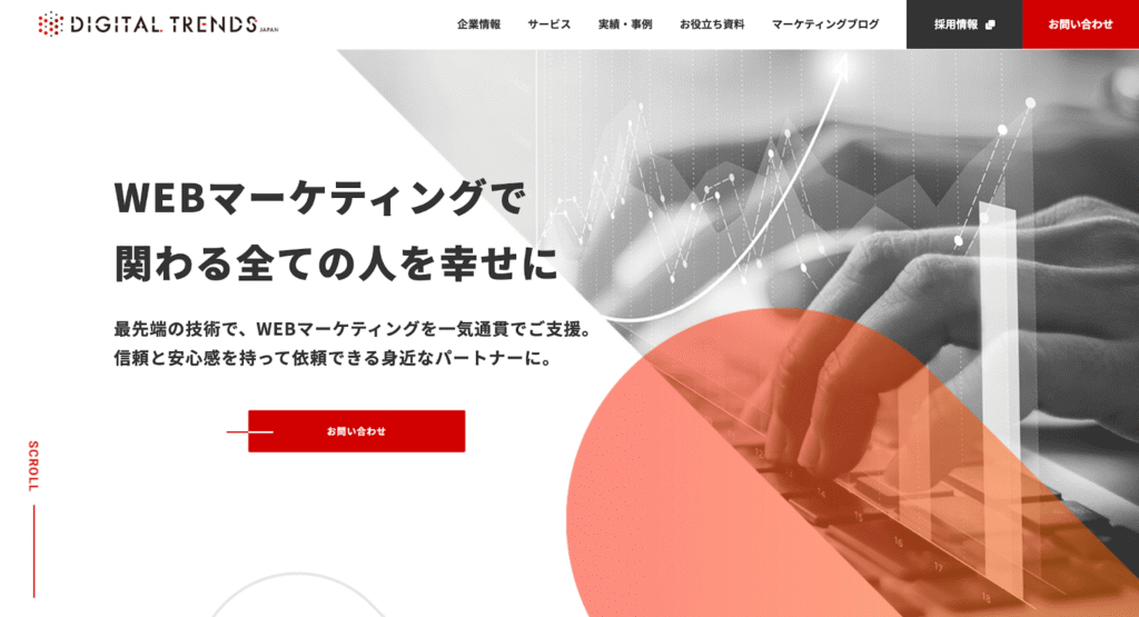 株式会社デジタルトレンズは、戦略、広告、分析を包括した「マーケティング型」のLP制作を強みとしています。 特にSEO対策と広告運用の両面から集客設計に強く、LP制作を単体のプロジェクトとしてではなく、マーケティング活動の一環として捉えています。