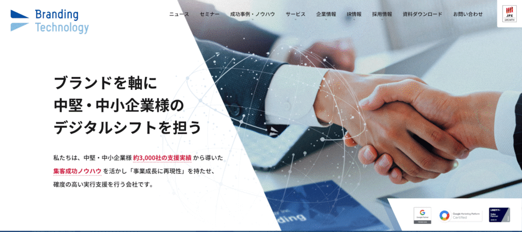株式会社ブランディングテクノロジーは、中小企業・地域企業の支援を得意とし、LP制作にSEO、広告運用を一体で組み合わせたサポートを提供します。