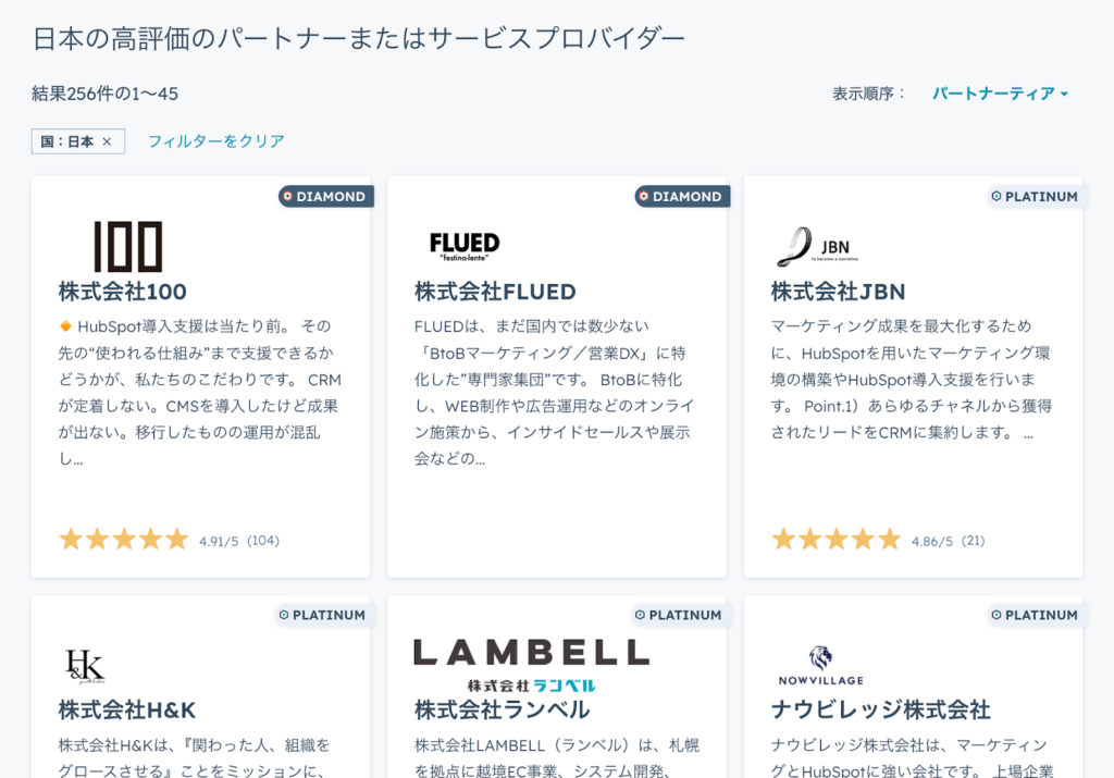 HubSpotの公式サイトからも認定パートナーを確認することができます。