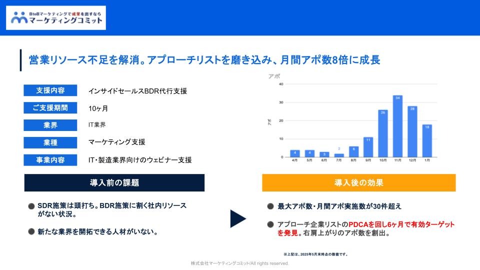 戦略設計からBDR運用まで支援する「マーケティングコミット」