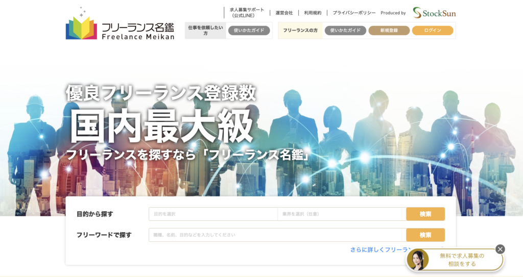 フリーランス名鑑は、企業とフリーランスが直接つながることができるプラットフォームです。