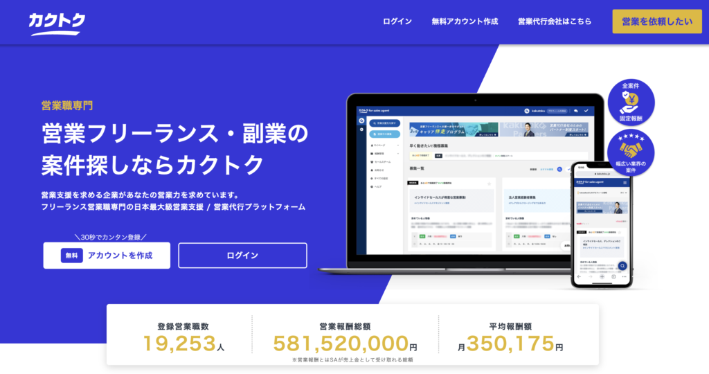 カクトクは、営業のプロ人材に特化したマッチングサービスです。