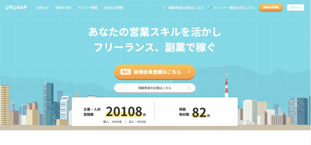 ウルマップは、営業人材と企業をつなぐマッチングサービスで、営業代行案件にも対応しています。