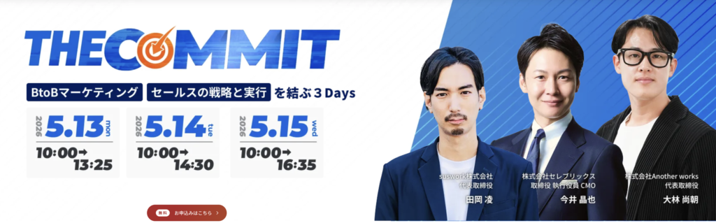 本セッションは、5月13日(水)〜15日(金)にかけて行われるマーケティングコミット主催カンファレンス『THE COMMIT』へ向けて、本番の価値を最大化するために、登壇企業の“講演内容を決める企画会議”